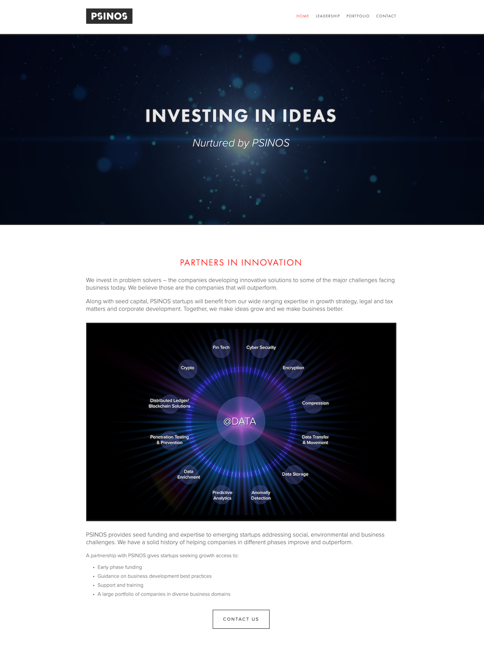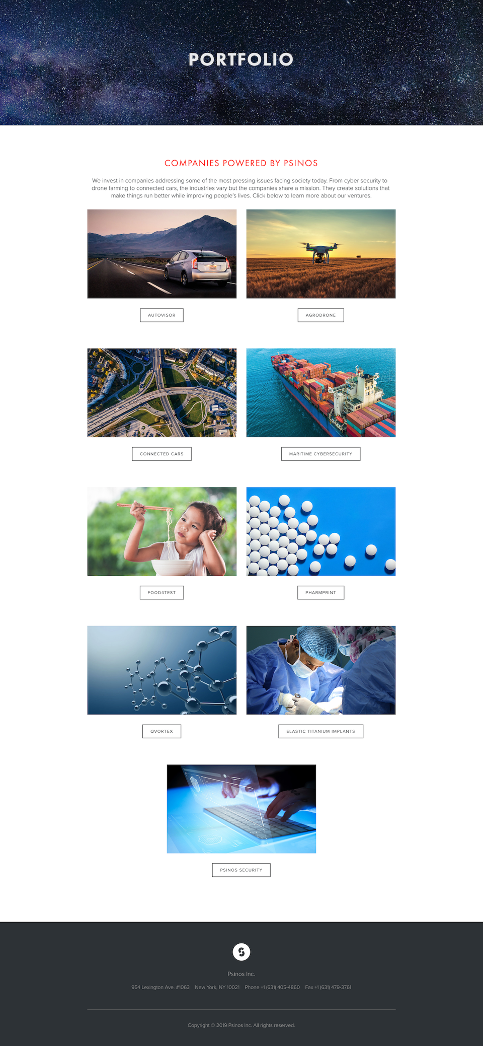 International venture capital firm with a diverse portfolio needed a new website to attract new startups as well as potential investors. Working with the designer, I wrote all of the copy including, tag lines, mission statements and descriptions for PSINOS and its portfolios.