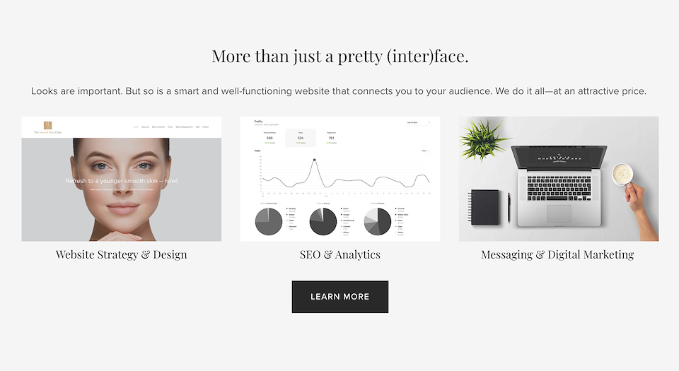 Local branding and design house wanted an upgrade to their existing website. With a bolder tone that complements a new and more contemporary design, my copy and content layout contributed to the much-needed face lift.