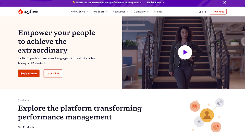 15Five wanted to update their current homepage to be more clear, accessible and inspiring. I crafted new headlines and supporting copy to reflect the unlimited potential of their platform and help them stand out from the crowd. I also helped spruce up the page layout and flow to create a more inviting and cohesive user experience.