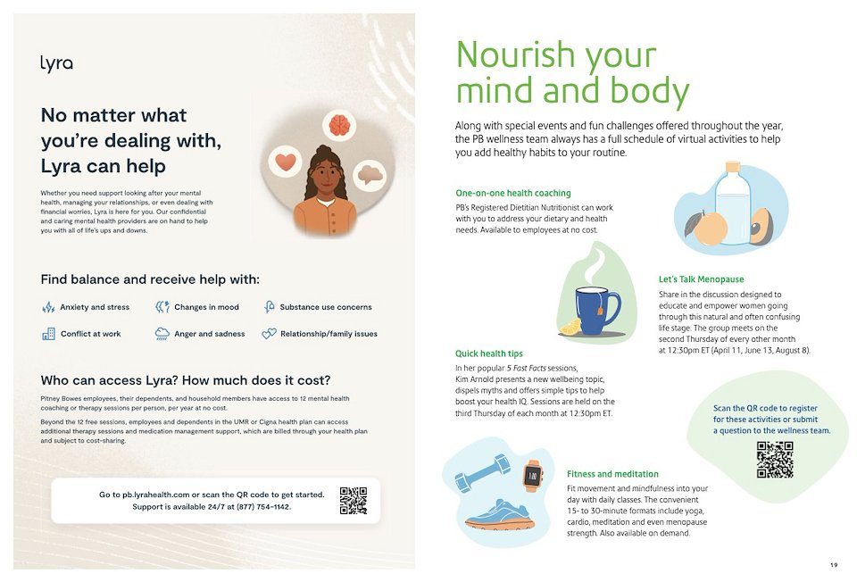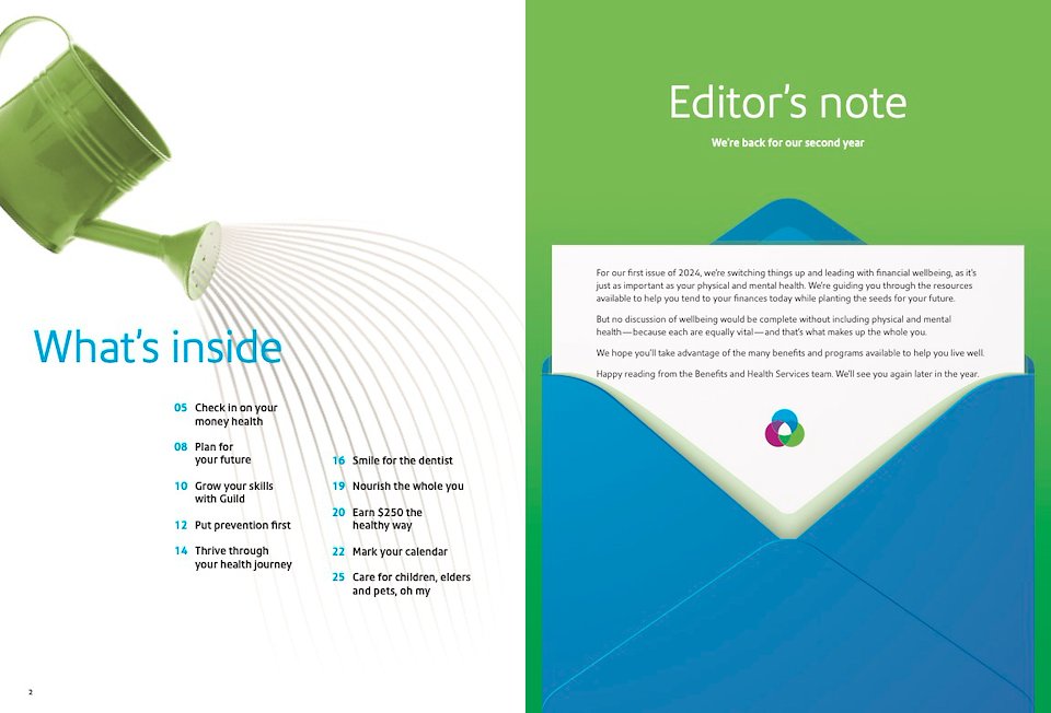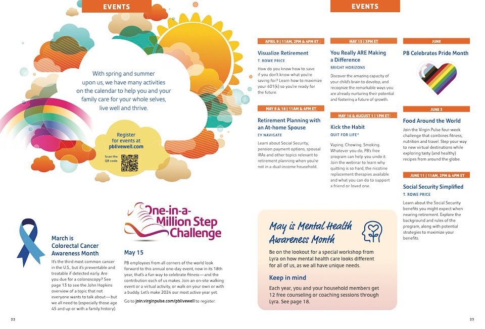 As part of a wellness brand refresh, PB needed a new channel to engage a diverse employee population and improve benefit utilization. Along with a new PB Live Well identity and website, I helped launch a twice-annual magazine that mails to employee homes and is translated to six languages. Working with the internal agency, I wrote and edited all content while providing creative direction to graphic designer. The first of its kind for the organization, PB Live Well Magazine gained company-wide acclaim and earned an ‘academy award’ for outstanding achievement.