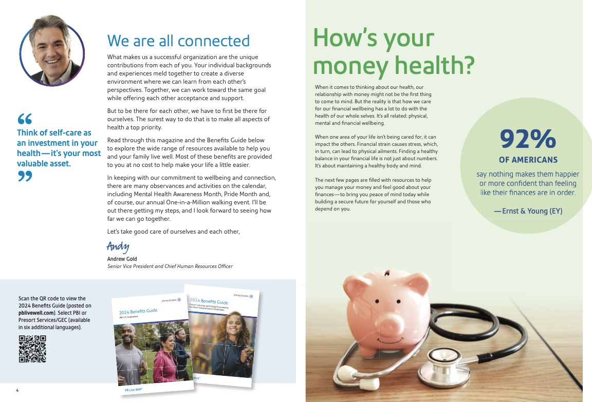 As part of a wellness brand refresh, PB needed a new channel to engage a diverse employee population and improve benefit utilization. Along with a new PB Live Well identity and website, I helped launch a twice-annual magazine that mails to employee homes and is translated to six languages. Working with the internal agency, I wrote and edited all content while providing creative direction to graphic designer. The first of its kind for the organization, PB Live Well Magazine gained company-wide acclaim and earned an ‘academy award’ for outstanding achievement.